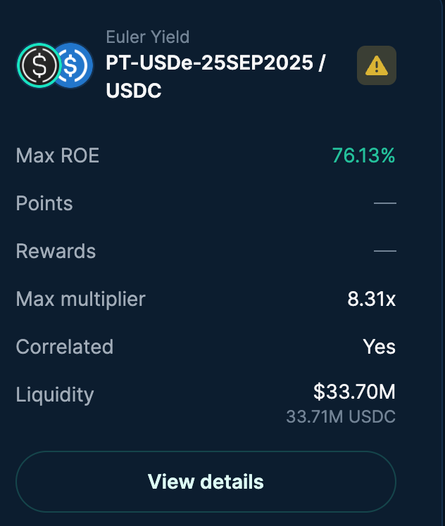 Mezo is a new protocol inspired by MakerDAO. Users deposit BTC on the Mezo app (on Bitcoin L1) and can borrow mUSD on the Mezo chain. The borrow rate is appealing (1% today), and users can then yield farm any of the USDE protocols on Pendle.