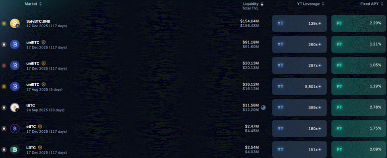 - Identify the interesting market on Pendle (eg. PT_LBTC_17Dec 2025)