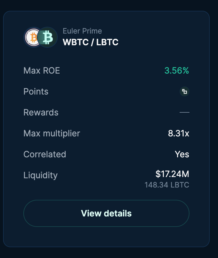 The only looping options available are correlated BTC pairs, such as depositing cbBTC and borrowing LBTC: