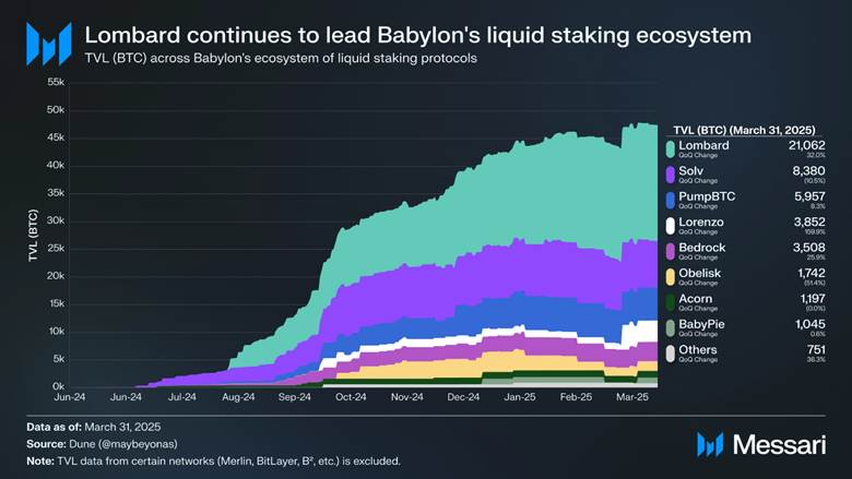 On Babylon, there are similar staking protocols like xSolvBTC by Solv, pumpBTC by PumpBTC, stBTC by Lorenzo, uniBTC by Bedrock, with lower TVL than Lombard.