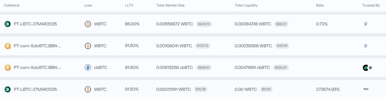 - BTC PT tokens are generally not accepted as collateral. There was a time when Morpho accepted BTC PT as collateral, but now neither AAVE nor Morpho Blue accepts PT tokens as collateral, so this strategy will not work until the collateral is recognized