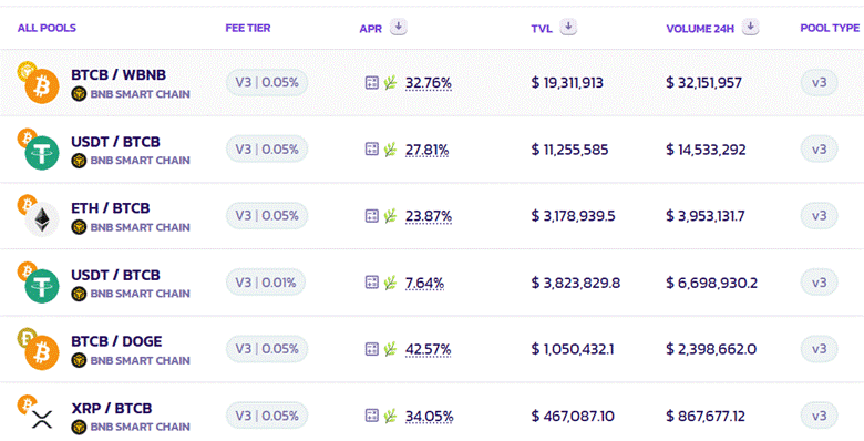 For small capital, smaller pools like the ETH/BTCB pool and the BTCB/DOGE pool should be very attractive, while large capital will significantly lower the APR of LP.
