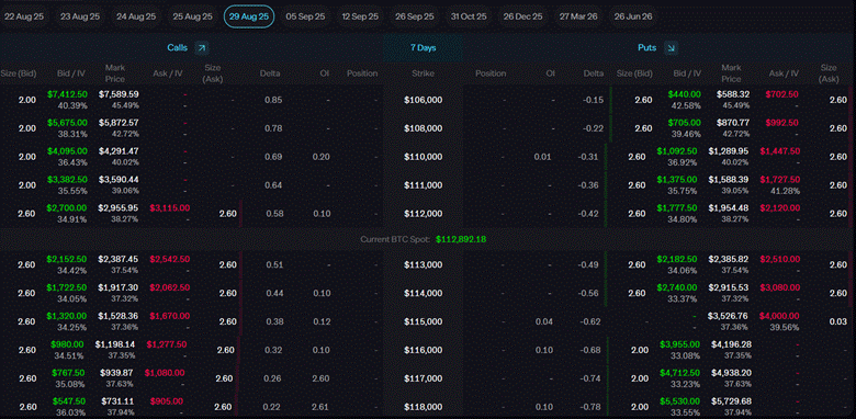 Below are the BTC options order book snapshots from Aug. 21, with expiration on Aug. 29.