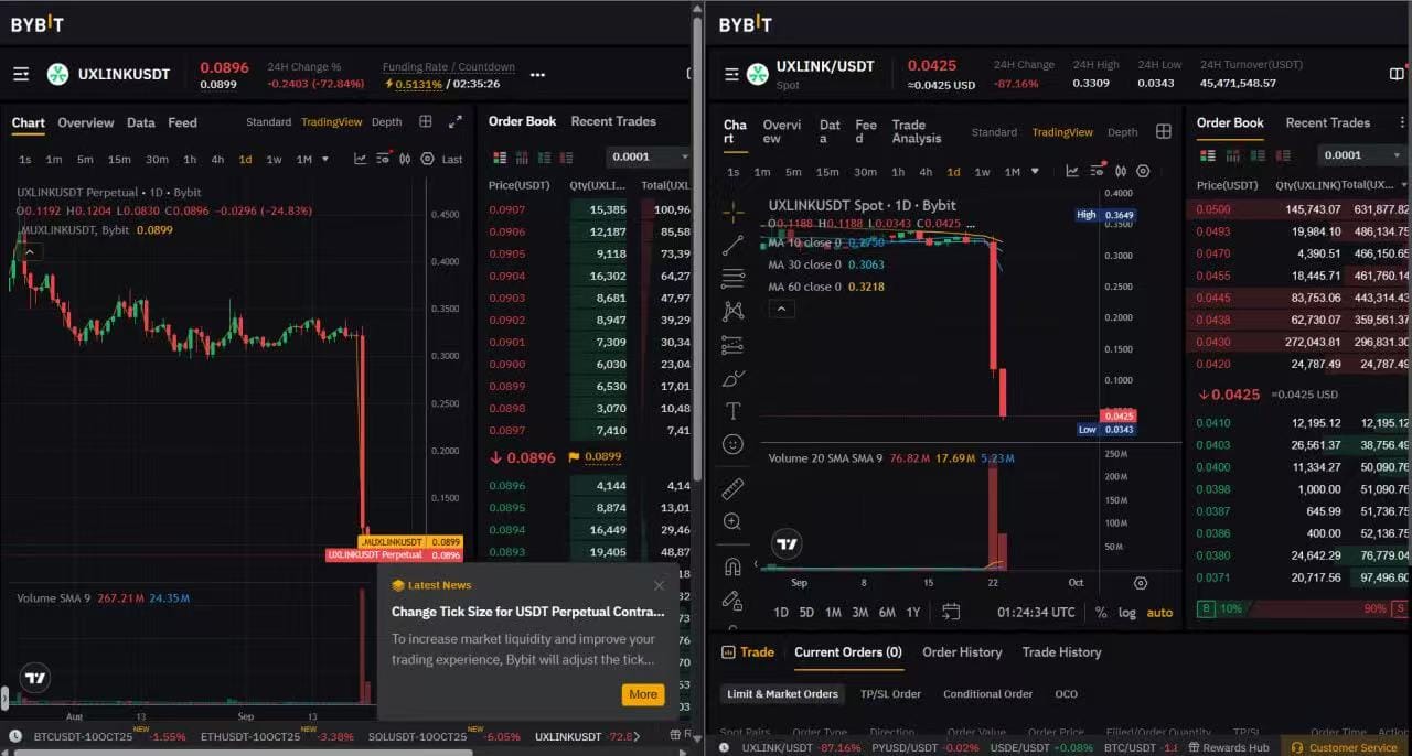 Meanwhile the hacker also minted massive amount of UXLINK, causing a price crash of UXLINK token and big difference in spot and perp price.