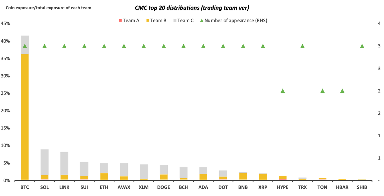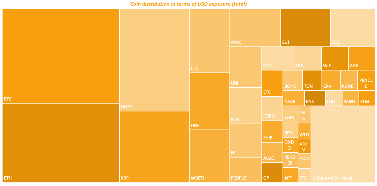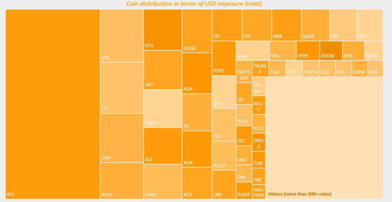 We have combined daily snapshot data from trading teams to summarize the asset positions from October 1st, 2025, at 00:00 UTC to November 1st, 2025, and aggregated the USD exposure for each underlying currency based on the underlying assets.