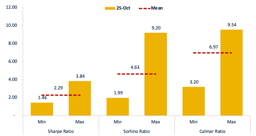 We further assessed risk-adjusted performance through Sharpe Ratio (measuring return per unit of total risk), Sortino Ratio (focusing specifically on downside risk), and Calmar Ratio (evaluating returns relative to maximum drawdown), providing a comprehensive framework to gauge strategy effectiveness across varying market environments.