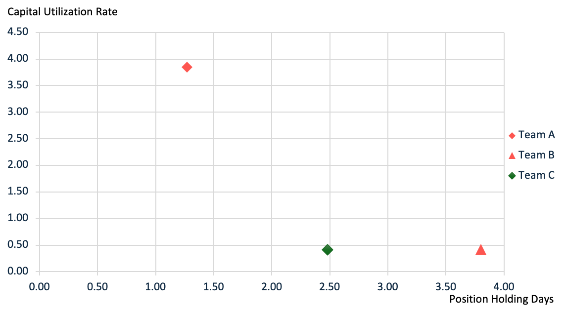 The multi-team dataset analysis reveals that long-short strategies exhibit superior liquidity performance, as demonstrated by consistently shorter position turnover cycles and higher capital utilization rates. The results across both metrics provide robust evidence for the liquidity benefits inherent to long-short strategy structures.