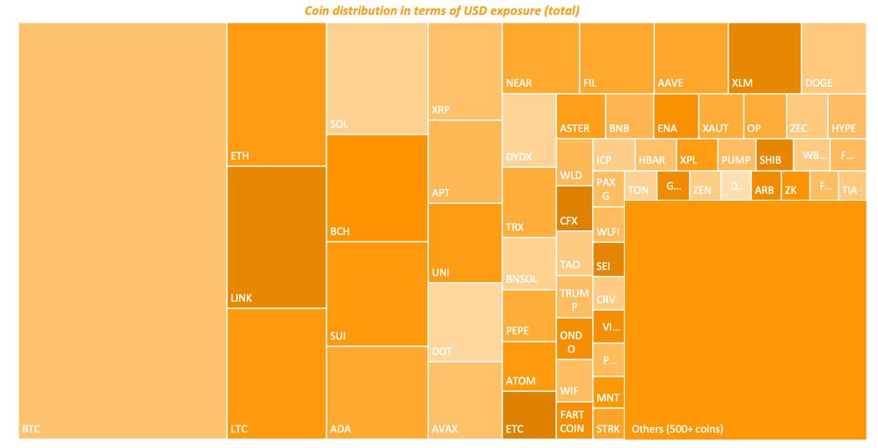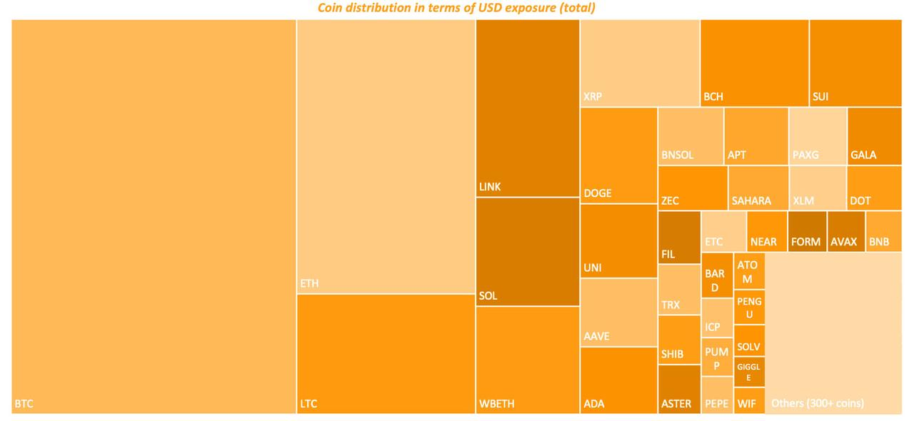 We have combined daily snapshot data from trading teams to summarize the asset positions from November 1st, 2025, at 00:00 UTC to December 1st, 2025, and aggregated the USD exposure for each underlying currency based on the underlying assets.