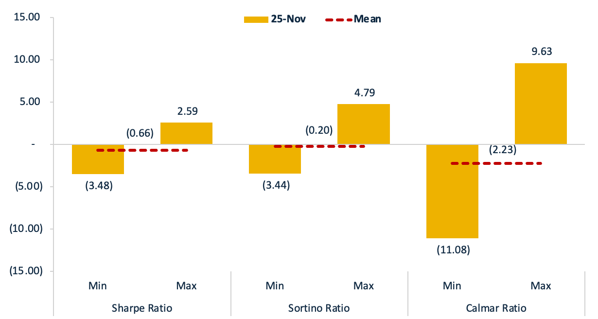We further assessed risk-adjusted performance through Sharpe Ratio (measuring return per unit of total risk), Sortino Ratio (focusing specifically on downside risk), and Calmar Ratio (evaluating returns relative to maximum drawdown), providing a comprehensive framework to gauge strategy effectiveness across varying market environments.