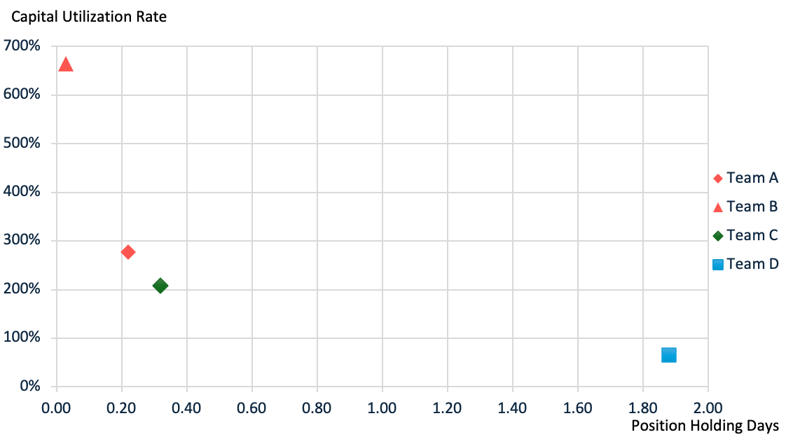 The multi-team dataset analysis reveals that long-short strategies exhibit superior liquidity performance, as demonstrated by consistently shorter position turnover cycles and higher capital utilization rates. The results across both metrics provide robust evidence for the liquidity benefits inherent to long-short strategy structures.