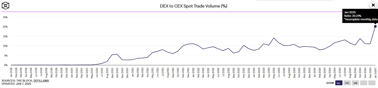 DEX volume surpasses 20% CEX volume