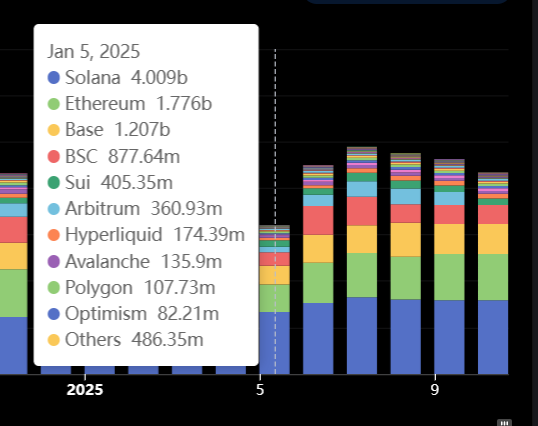 The Solana network has surpassed Ethereum and Base combined in 24-hour decentralized exchange (DEX) trading volume, according to data from DefiLlama.According to DefiLlama, daily trading volume across Solana-based DEXs at $4 billion on Jan. 5, versus nearly $1.8 billion for Ethereum and $1.2 billion for Base, and $0.36 billlion for Arbitum, Ethereum’s most popular layer-2 scaling networks.