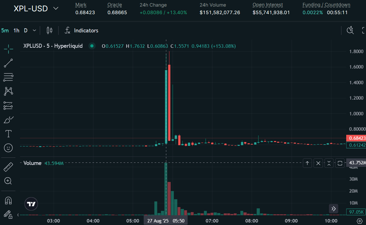 The futures market for Plasma, a stablecoin-focused blockchain, unreleased XPL token on decentralized exchange Hyperliquid experienced one of its most volatile trading episodes to date overnight.