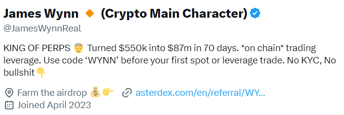 And now there are multiple tweets mentioning CZ or Aster or BNB chain from James.
