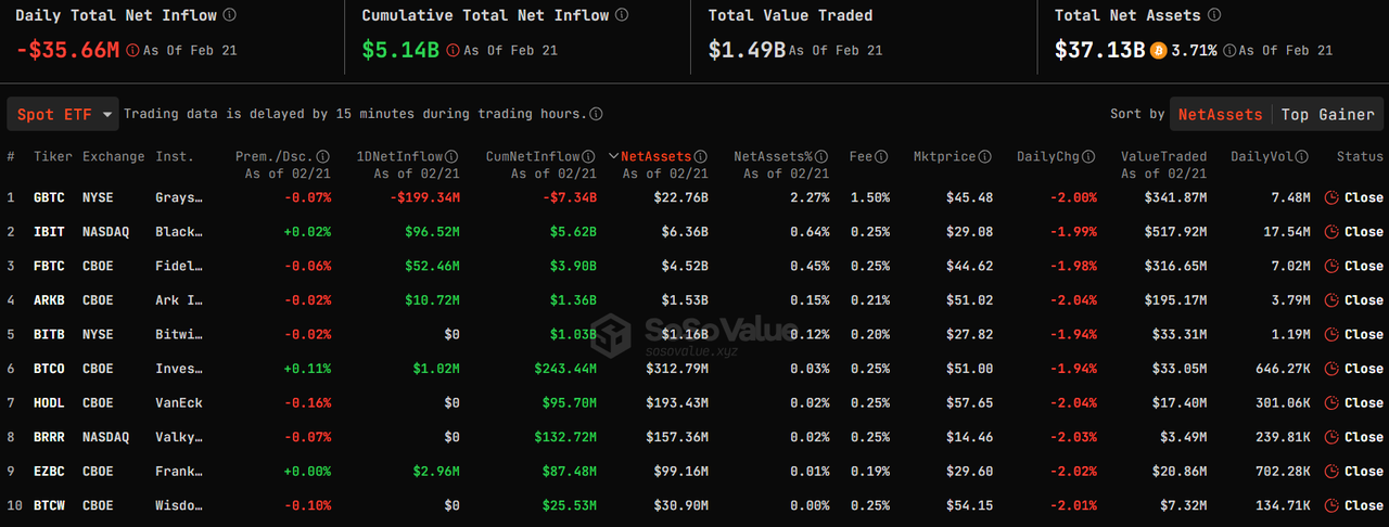 Since Jan.25, there's 17 consecutive trading days that money inflows BTC ETF.Feb. 21 is the 1st day net outflow since then, with daily outflow $35.66 million.