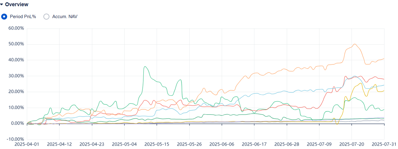 Below are the real performances of several quant trading teams in Q2 2025 with a variety of arbitrage, long short and directional.