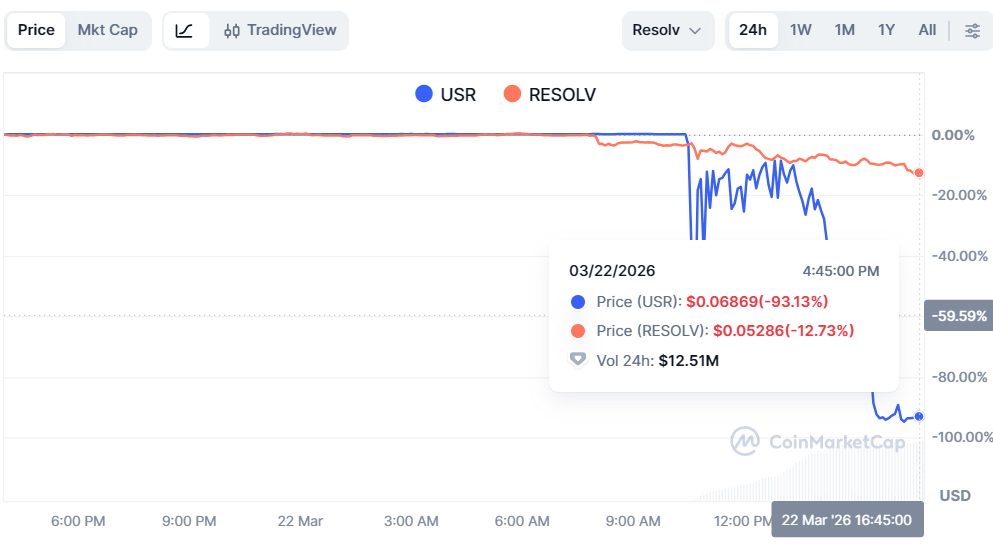 In 4 hours of the hack, $USR value has dropped by 93% while $RESOLV just dropped 12%