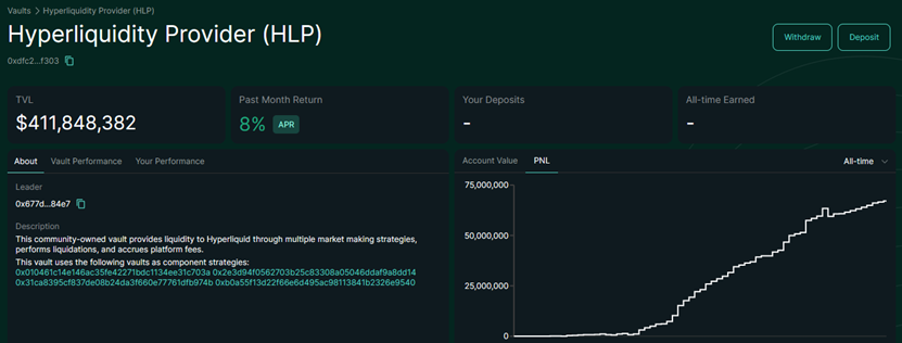 - Hyperliquid user vaults, like https://app.hyperliquid.xyz/vaults/0xac26cf5f3c46b5e102048c65b977d2551b72a9c7