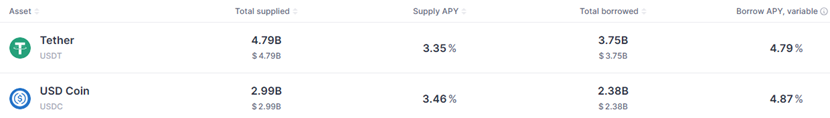 All those stablecoins, as long as they have a pegging scheme and a liquid market to trade or redeem with USDT or USDC or even USD, will at lease follow the interest rate of USDT or USDC because the least thing to do is to borrow this coin and trade into USDT or USDC for trading purpose. And there should some subsidy likely from the stablecoin issuer to incentivize users for adoption so their deposit and borrow rate should be closer than USDT or USDC.