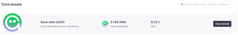 - GHO can be supplied into AAVE for yield. The concept of sGHO is proposed in Aave Chan Initiative but still in discussion.