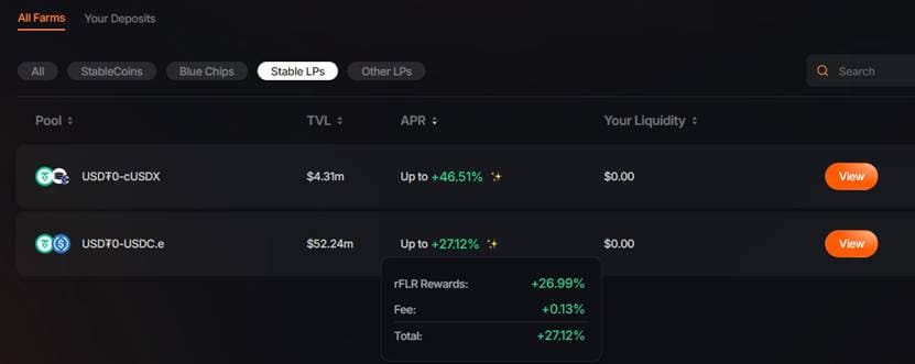 For example, now SparkDEX has quite high incentive on USDC/USDT LP.