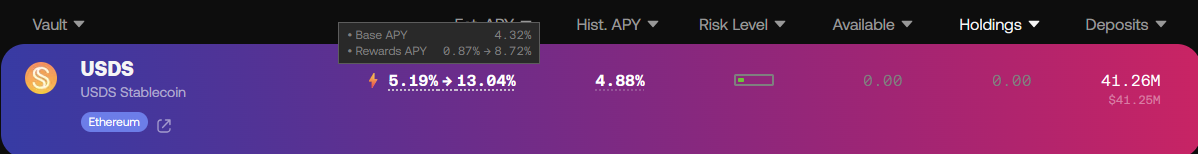 But it's not always small or new protocols. Now Yearn is also incentivizing USDS deposits with 13.04% APY.