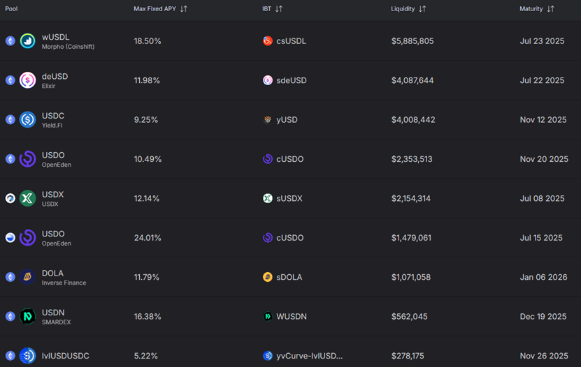 There are similar protocols like RateX, Exponent and Spectra as well, yield is overall higher while liquidity is mainly on smaller stablecoins.