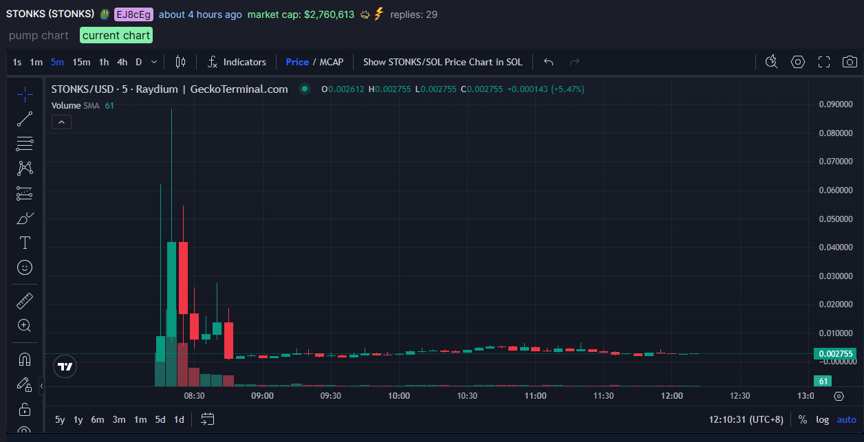 The coin: https://pump.fun/coin/6NcdiK8B5KK2DzKvzvCfqi8EHaEqu48fyEzC8Mm9pump hit $0.088 peak price and now at $0.002755.
